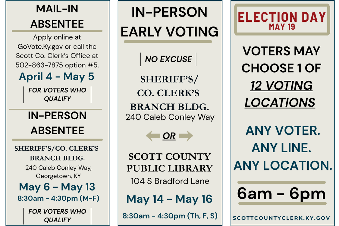 Find Scott County, Kentucky election information. Register to vote, become a candidate and more