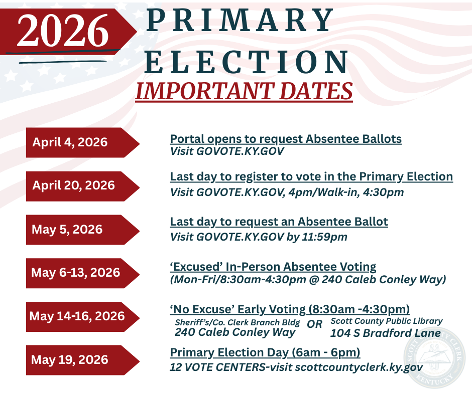 CLICK HERE and register to vote, update your current voter registration content or find out more information about Kentucky’s Election process from the KY STATE BOARD OF ELECTIONS